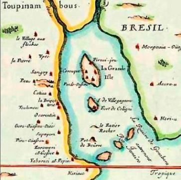 Em 1500, este território passou a fazer parte da cartografia econômica europeia de formas distintas. Os portugueses, por meio da catequização dos povos originários e uso de mão de obra escrava para geração de riquezas, e os franceses, que aqui aportarem em 1555, com objetivo inicial fixar uma colônia francesa e exploração do pau-brasil. Ao contrário dos portugueses, a relação com os Tupinambá foi amistosa e ultrapassou o escambo, gerando o nascimento de muitos descendentes franco-Tupinambás durante os doze anos dessa convivência.