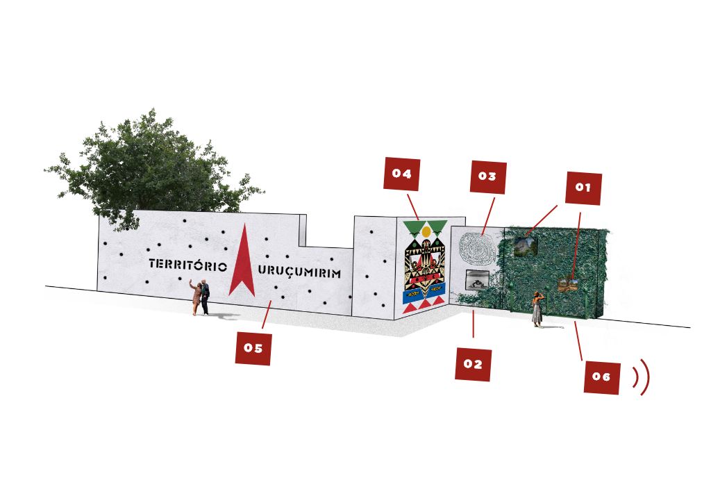 E assim, apoiados pelo edital, convidamos cinco artistas e um designer para recriar o caminho sobre os muros da Ladeira da Glória, entre os números 26 e 98. Após as trocas de ideias, cada um deles plasmou a sua visão do caminho. Antonio Ton criou um mural com referências a essas várias camadas históricas; Mana Bernardes criou um poema inédito e o registrou com sua linguagem manuscrita sobre a terra Uruçumirim. Anápuàka Tupinambá criou uma instalação sonora com músicas compostas por artistas indígenas de todo o Brasil. Somam-se a estas intervenções as fotografias em grande formato Cesar Duarte e Milton Guran. O projeto conta também com a participação do designer Jair de Souza, que criou uma marca para o território Uruçumirim.