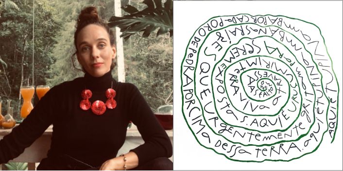 Por meio de um manuscrito pintado, obra poética inédita criada a partir de sua experiência no local, a artista Mana Bernardes ilumina e revela as várias camadas e texturas do Caminho Ancestral da Glória.
